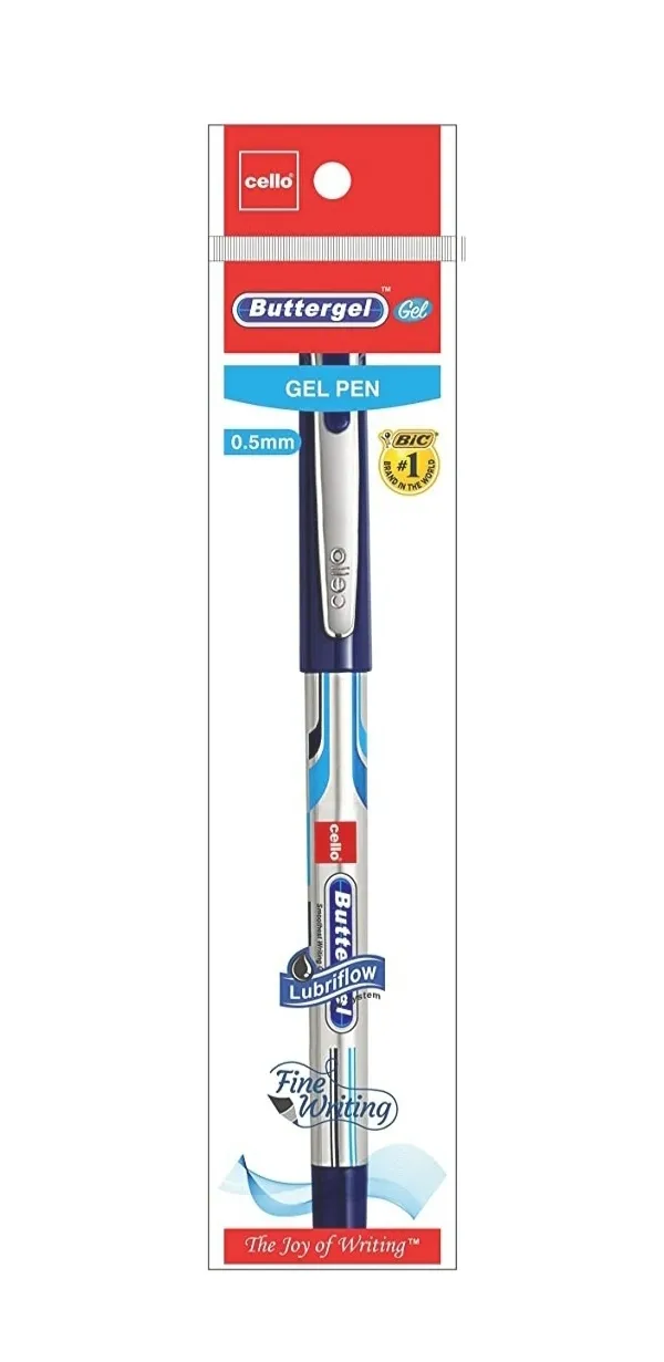 The Cello Butter Gel Pen combines practicality with style. Featuring an ergonomic design, it is crafted to maximize comfort during extended writing sessions. Its lightweight build prevents hand fatigue, while its sleek and contemporary look makes it an ideal companion for both work and school settings. Discover a pen that offers not just functionality, but an aesthetic edge.