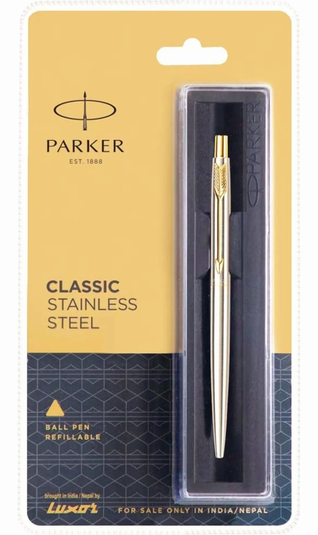Parker Classic Stainless Steel Gold Trim Ball Pen (Pack of 1)